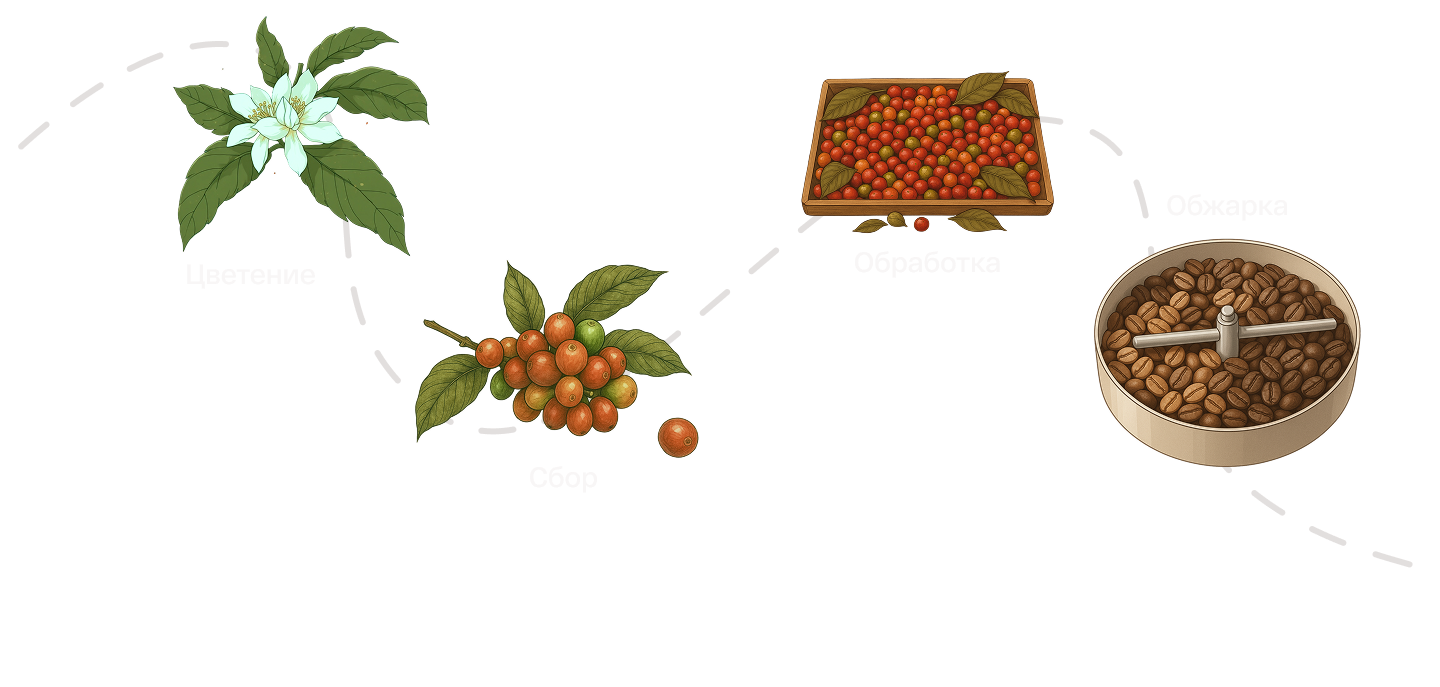кофе: натуральный, мытый, хани, вет-халл.