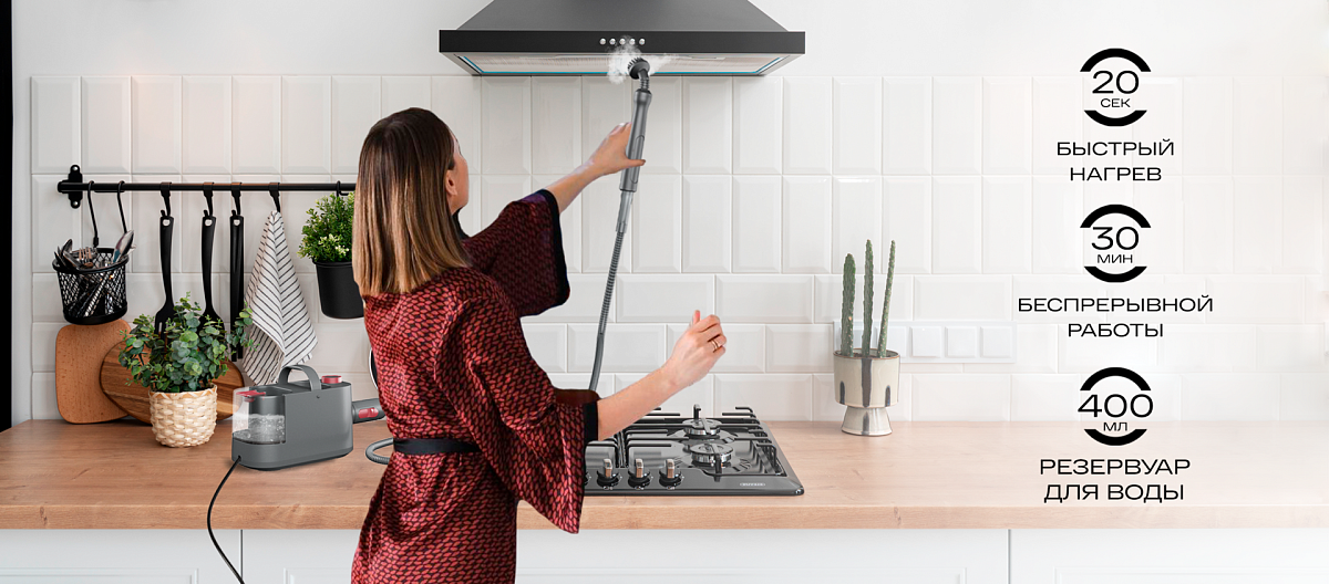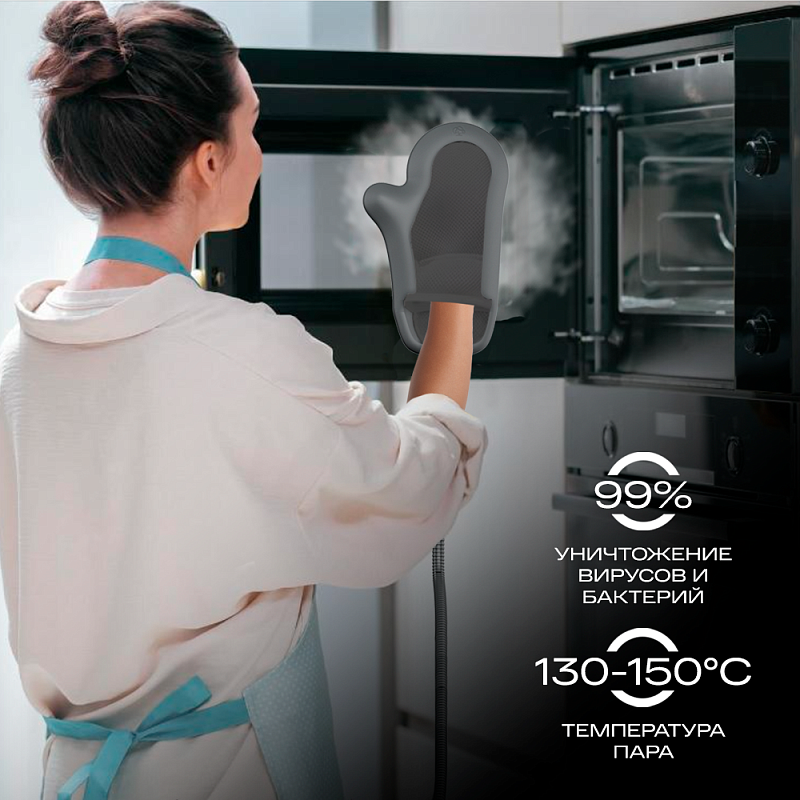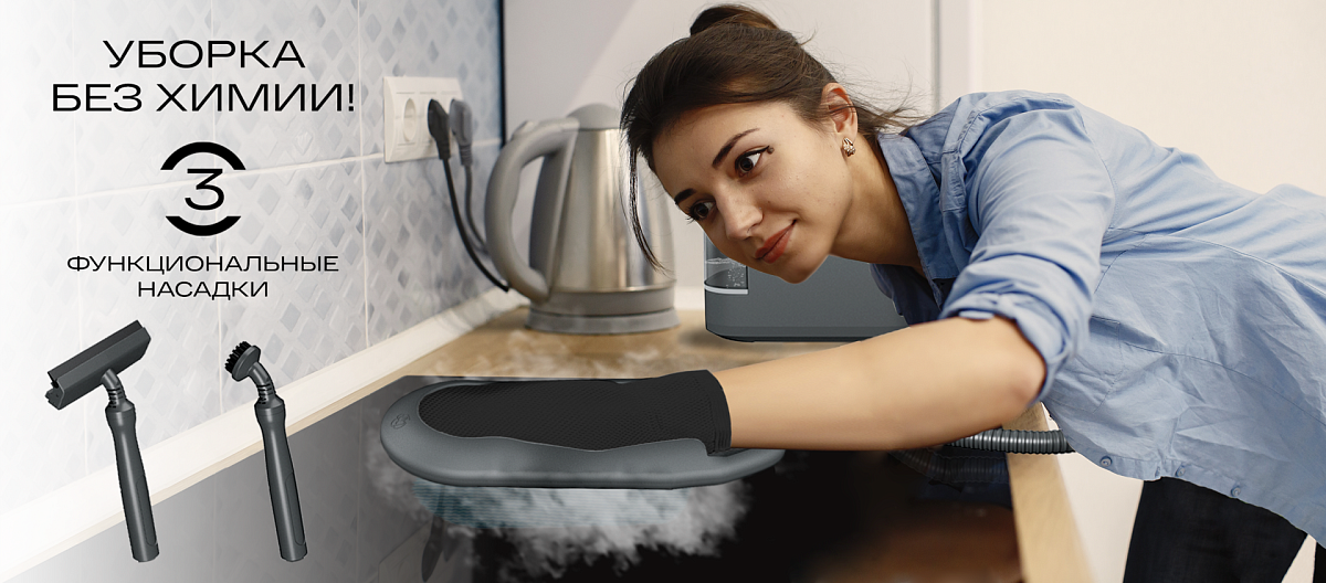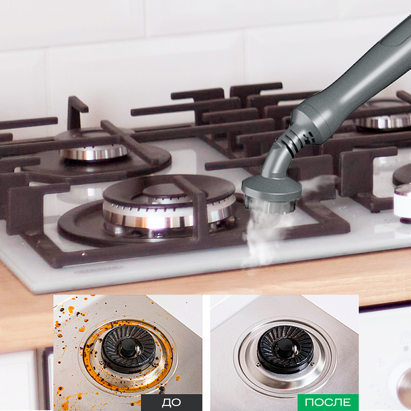 Благодаря 3 мультифункциональным насадкам (паровая перчатка, угловая щетка, насадка-скребок) вы сможете помыть окна и зеркала, очистить мягкую мебель, полы и ковры, удалить даже застаревшую грязь с плиты, духовки и стенок, привести в порядок ванную комнату.