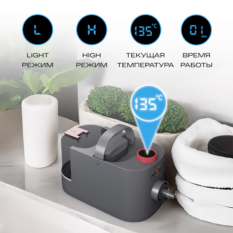 Многофункциональный портативный ручной пароочиститель Atvel CleanJet С100 идеален для естественной очистки и дезинфекции различных поверхностей без использования едких химикатов.