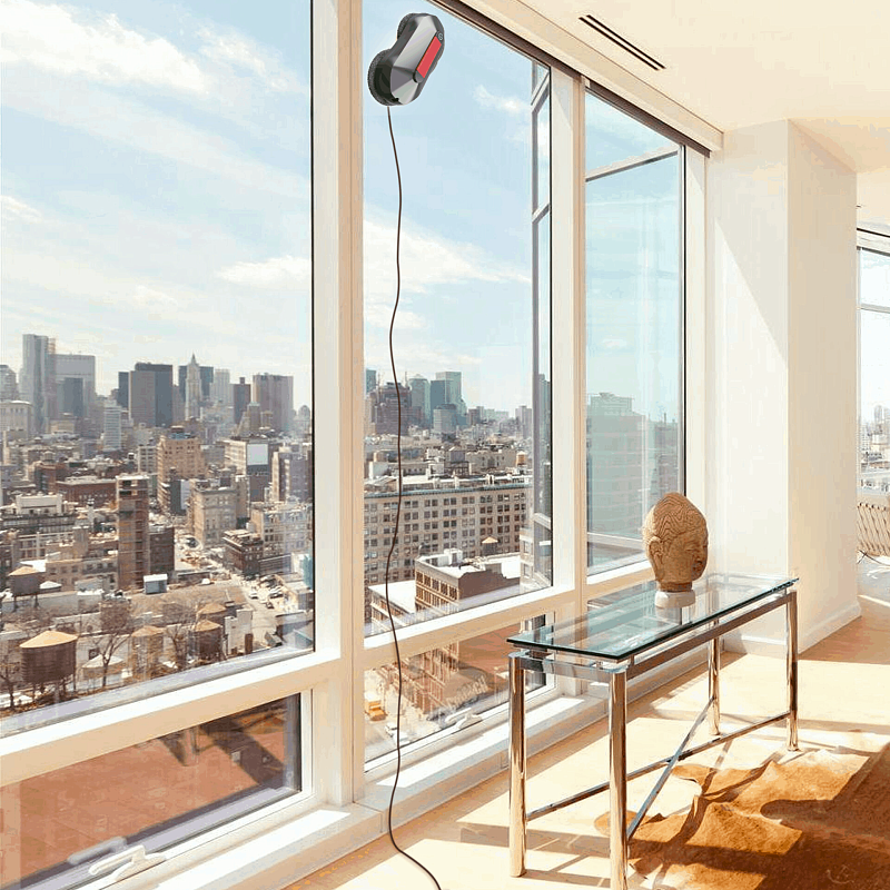 Он безупречно ориентируется в пространстве, тщательно моет всю поверхность от рамы до рамы, а после уборки возвращается на место старта.